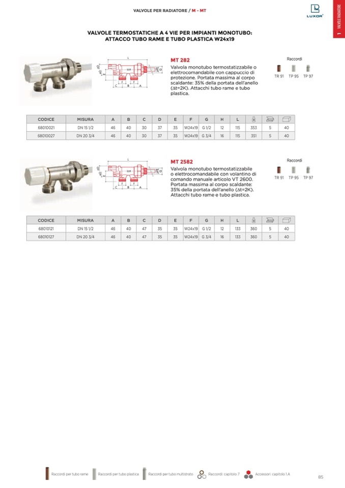 VALVOLE TERMOSTATICHE A 4 VIE PER IMPIANTI MONOTUBO: