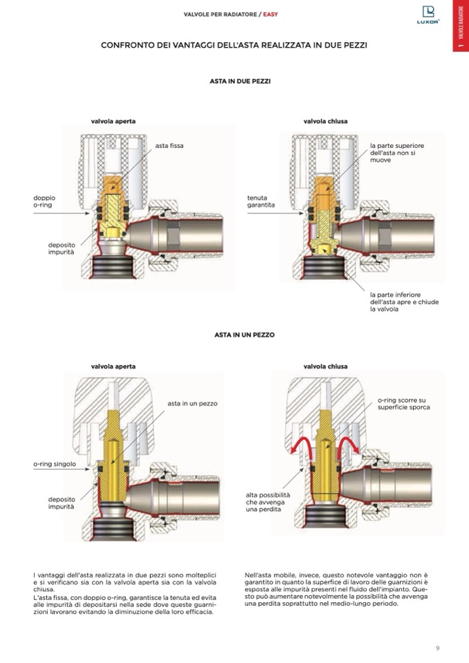 L'asta fissa, con doppio o-ring, garantisce la tenuta ed evita