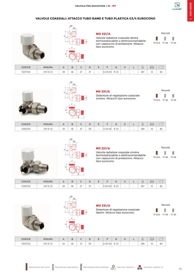 VALVOLE COASSIALI: ATTACCO TUBO RAME E TUBO PLASTICA G3/4 EUROCONO
