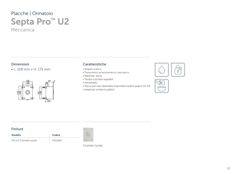• Placca per vaso abbinabile disponibile (vedere pagine 50-52)