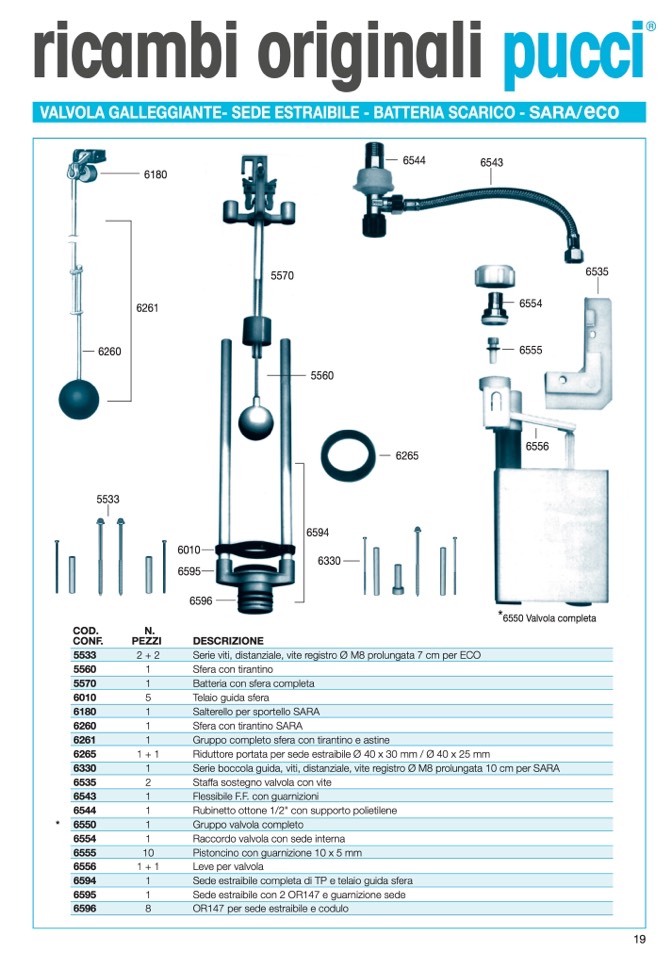 Serie boccola guida, viti, distanziale, vite registro Ø M8 prolungata 10 cm per SARA