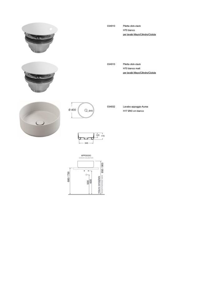 per lavabi Mayo/Cilindro/Ciotola