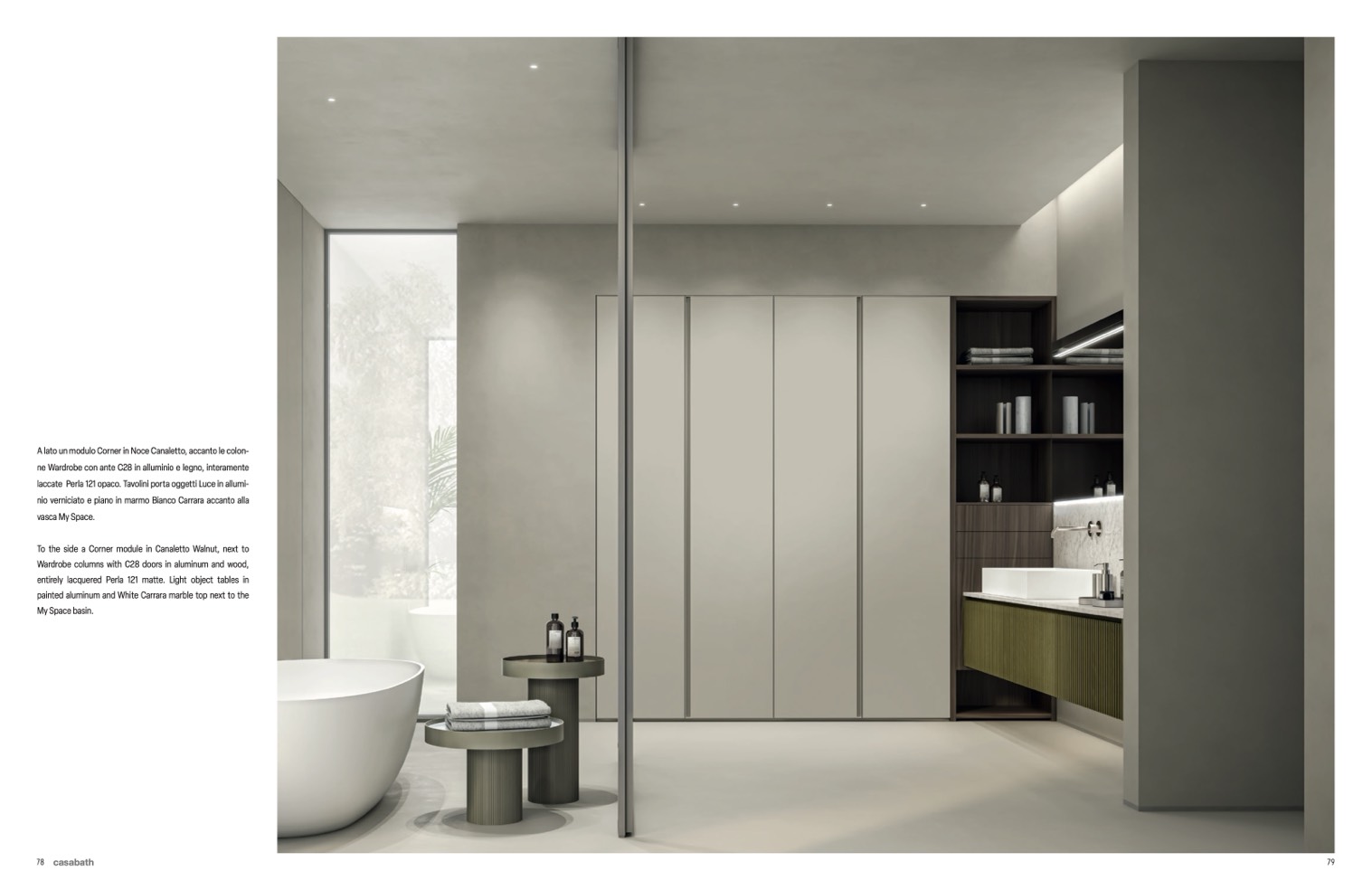 A lato un modulo Corner in Noce Canaletto, accanto le colon-
