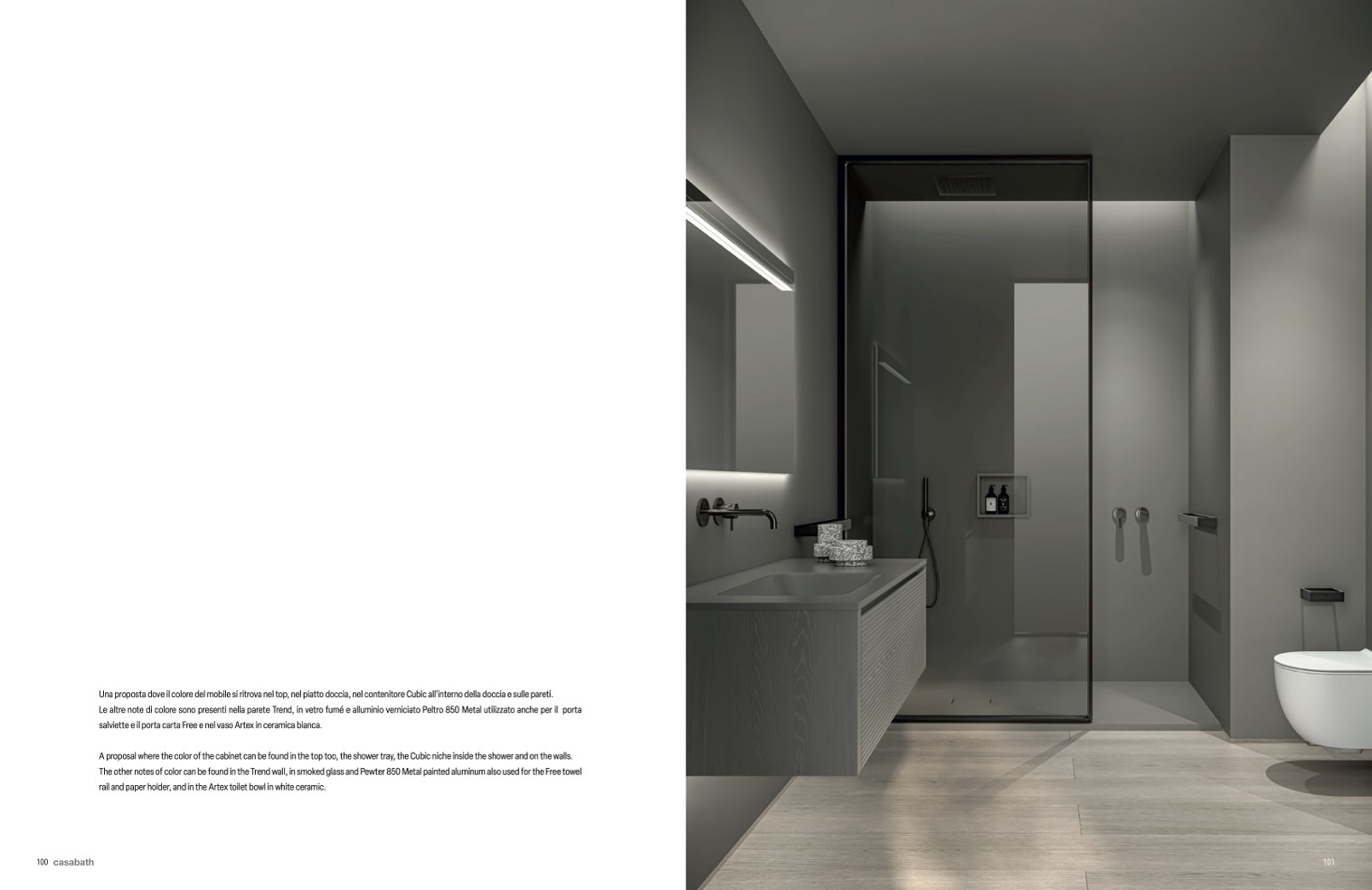 The other notes of color can be found in the Trend wall, in smoked glass and Pewter 850 Metal painted aluminum also used for the Free towel