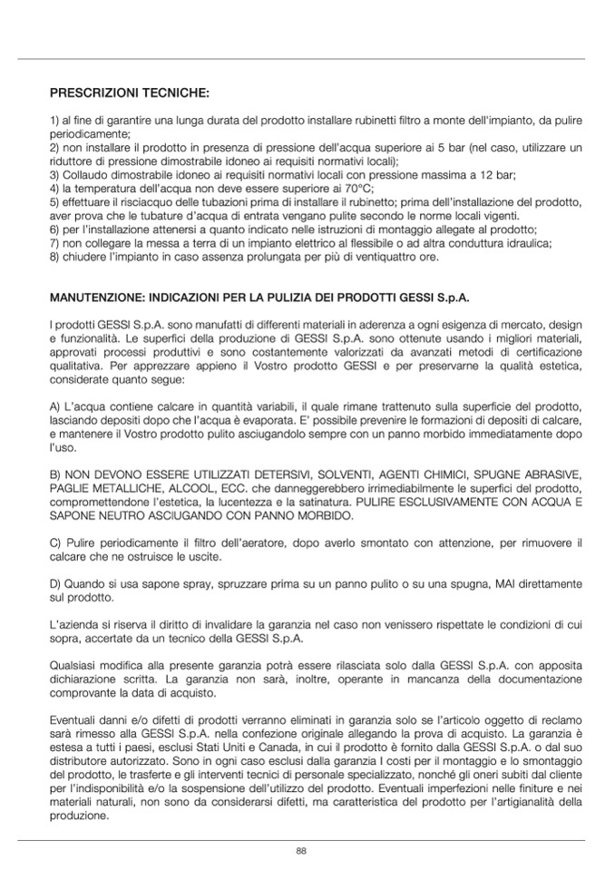 qualitativa. Per apprezzare appieno il Vostro prodotto GESSI e per preservarne la qualità estetica,