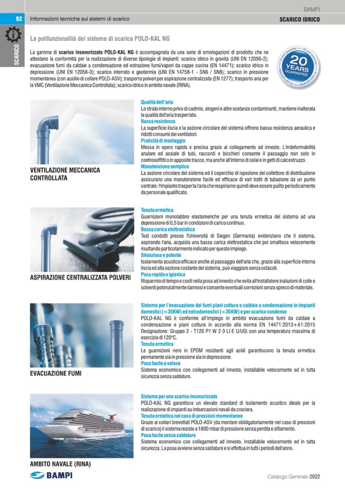 depressione (UNI EN 12056-3); scarico interrato e geotermia (UNI EN 14758-1 - SN6 / SN8); scarico in pressione