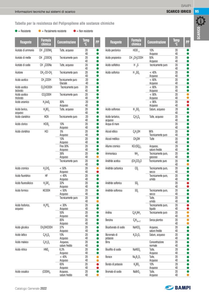 Tabella per la resistenza del Polipropilene alle sostanze chimiche