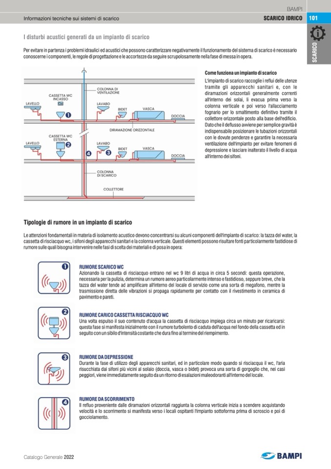cassetta di risciacquo wc, i sifoni degli apparecchi sanitari e la colonna verticale. Questi elementi possono risultare fonti particolarmente fastidiose di