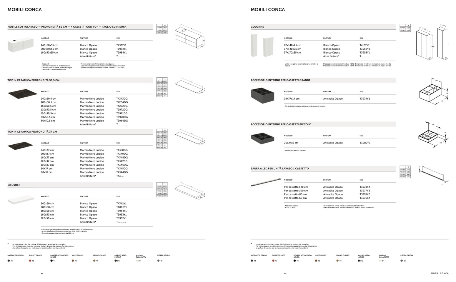 Le ultime due cifre del codice SKU indicano la finitura del modello.