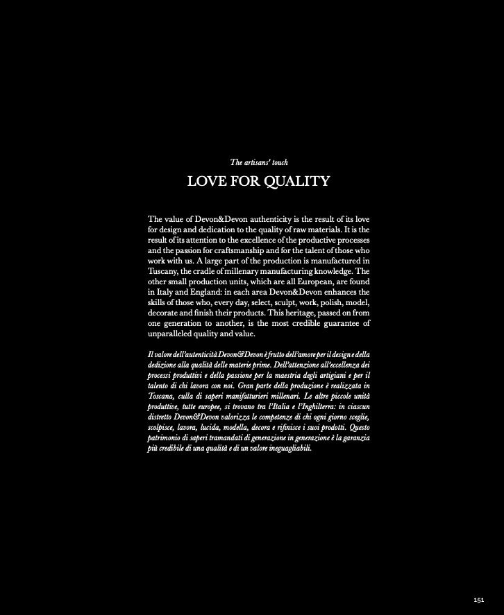 in Italy and England: in each area Devon&Devon enhances the