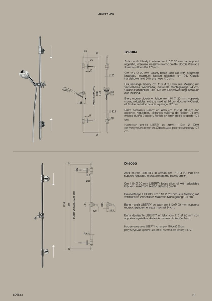 Brausestange LIBERTY cm 110 Ø 20 mm aus Messing mit