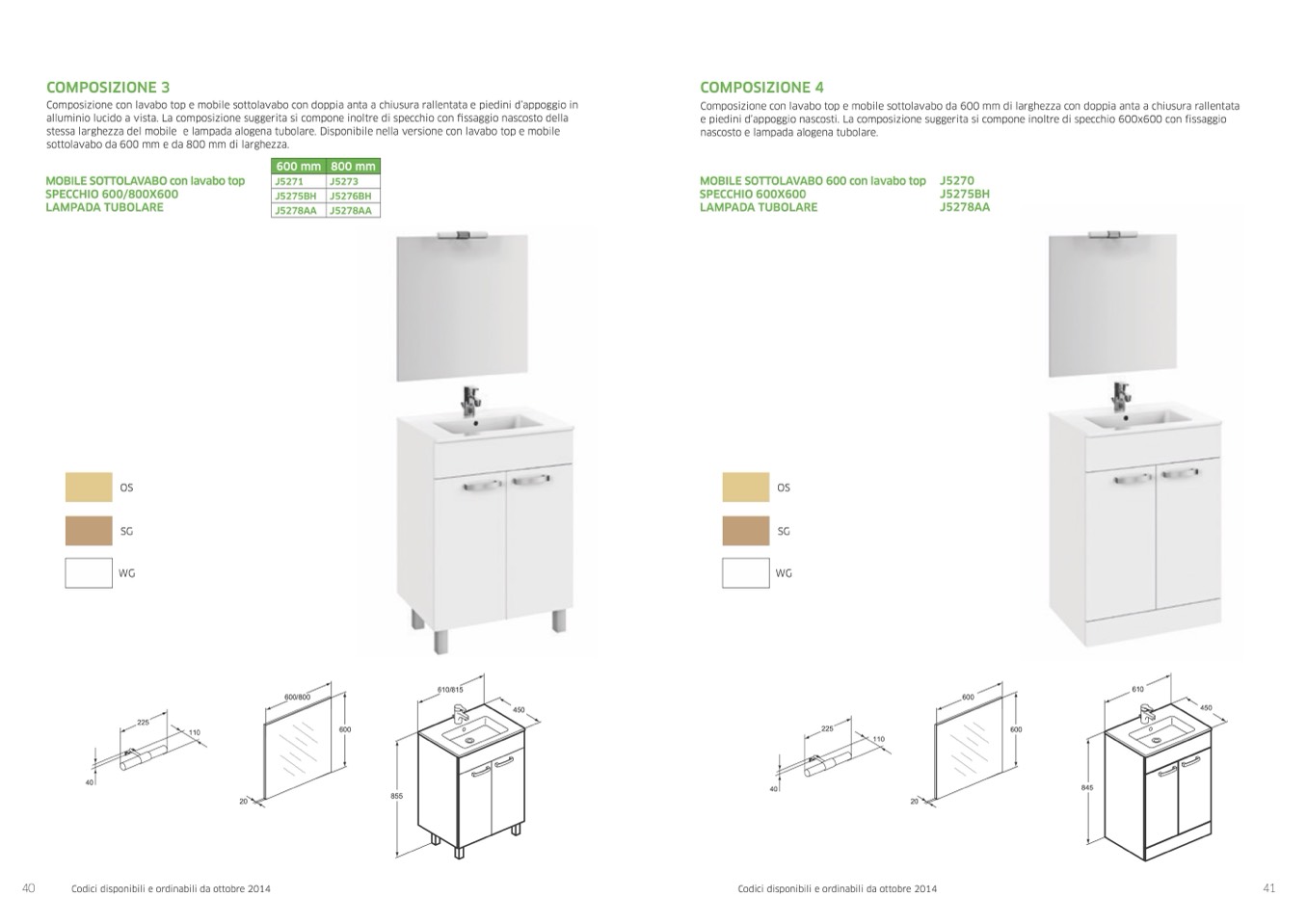 e piedini d’appoggio nascosti. La composizione suggerita si compone inoltre di specchio 600x600 con fissaggio