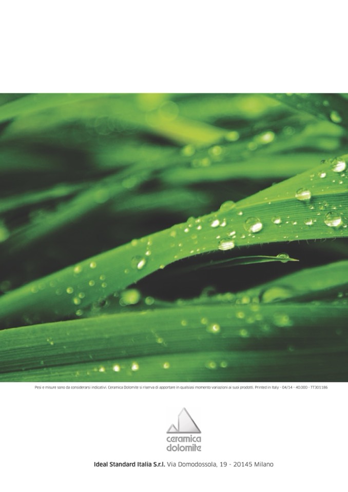 Pesi e misure sono da considerarsi indicativi. Ceramica Dolomite si riserva di apportare in qualsiasi momento variazioni ai suoi prodotti. Printed in Italy - 04/14 - 40.000 - tt301186