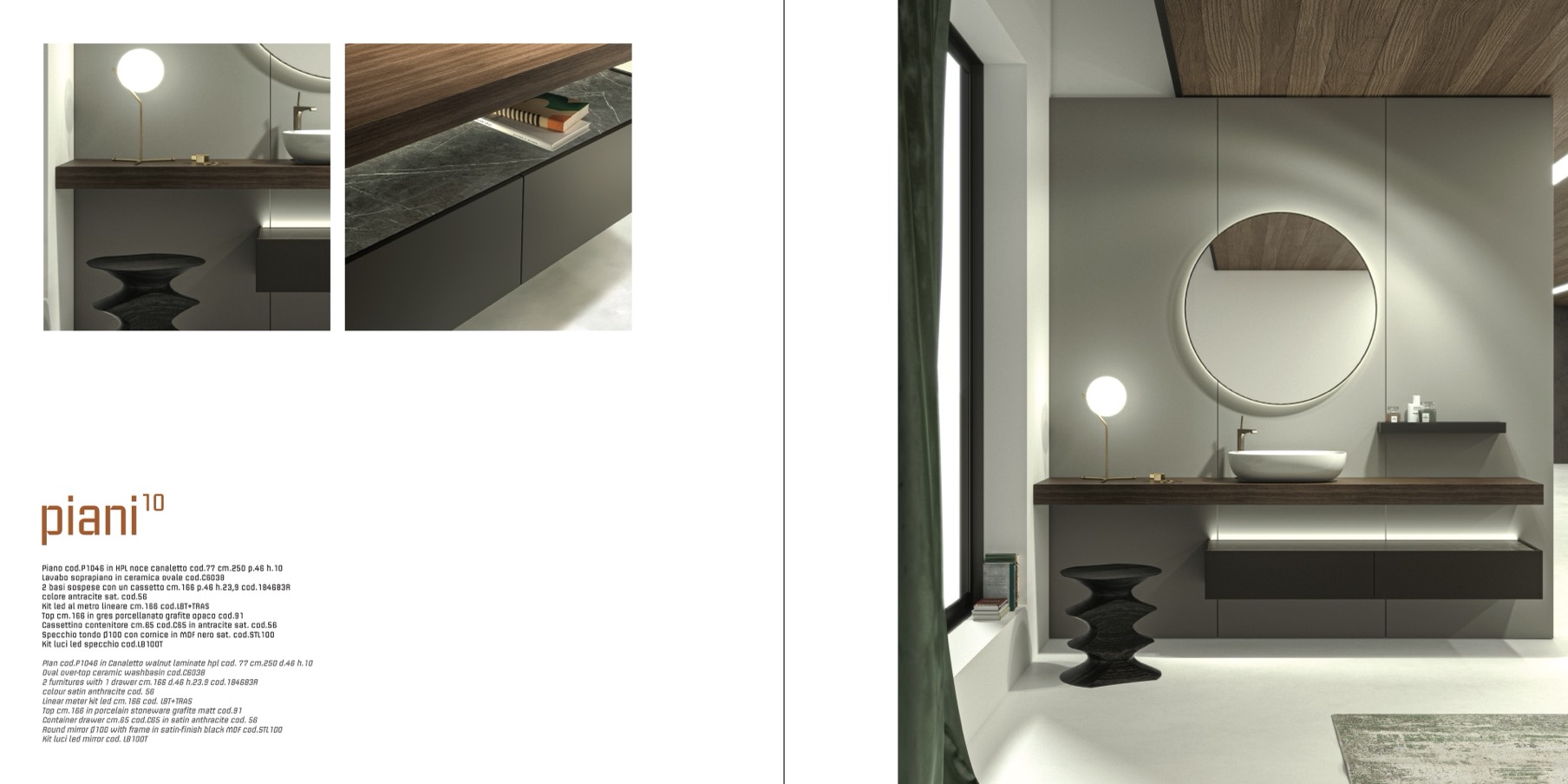 PIan cod.P1046 in Canaletto walnut laminate hpl cod. 77 cm.250 d.46 h.10