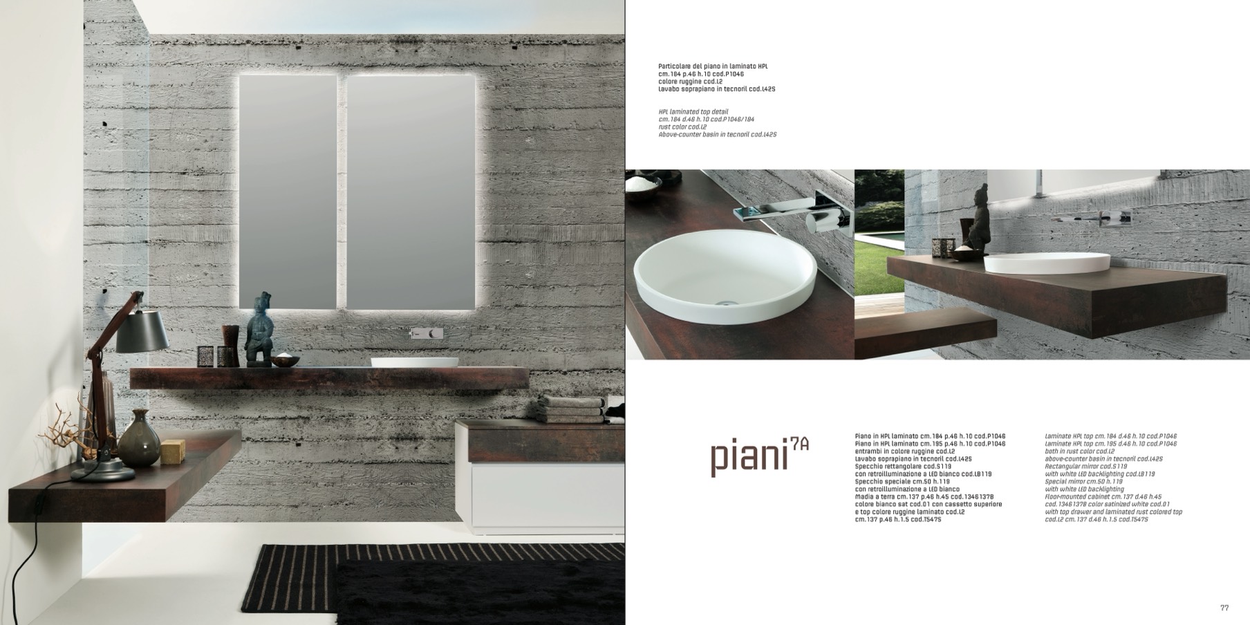 Piano in HPL laminato cm.184 p.46 h.10 cod.P1046