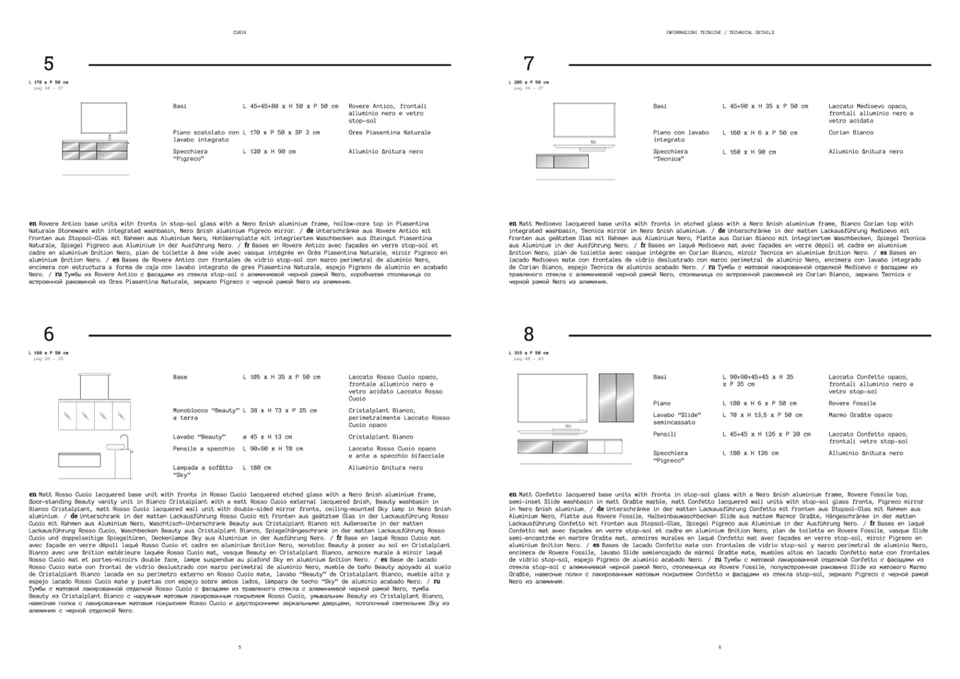 integrated washbasin, Tecnica mirror in Nero finish aluminium. / de Unterschränke in der matten Lackausführung Medioevo mit