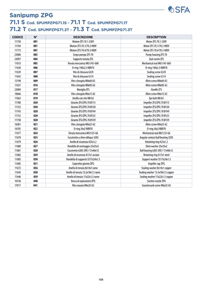 Corpo pompa ZFS 70