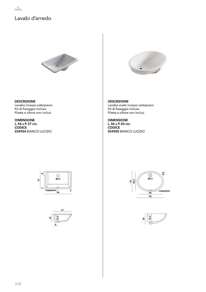 Lavabo incasso sottopiano