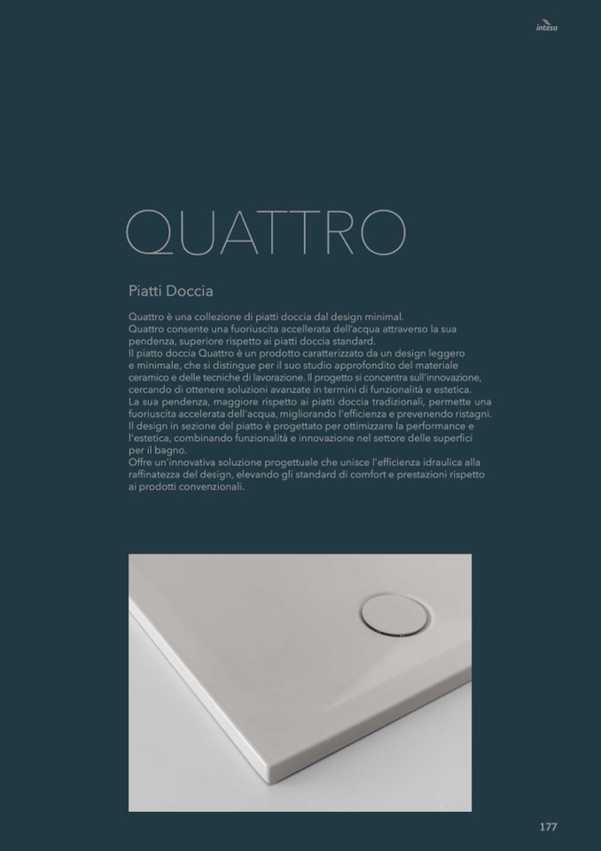 Il piatto doccia Quattro è un prodotto caratterizzato da un design leggero