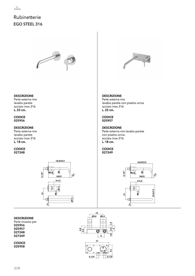 lavabo parete con piastra unica