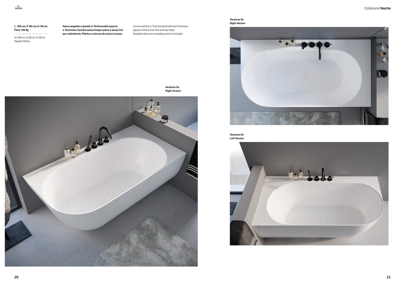 Vasca angolare a parete in Technosolid (opaco)