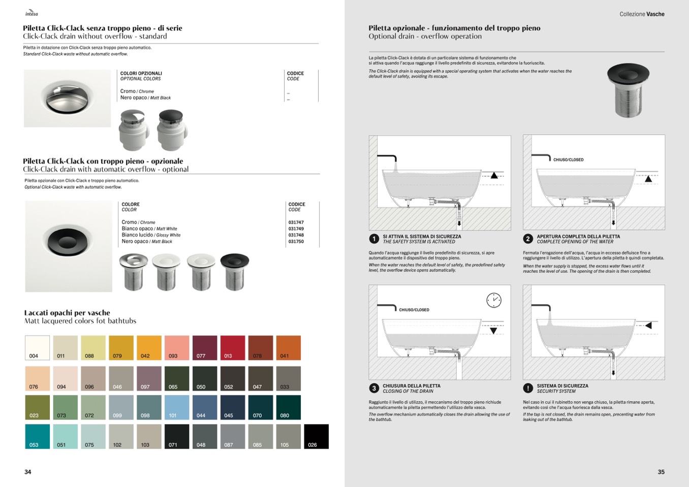 automaticamente la piletta permettendo l’utilizzo della vasca.