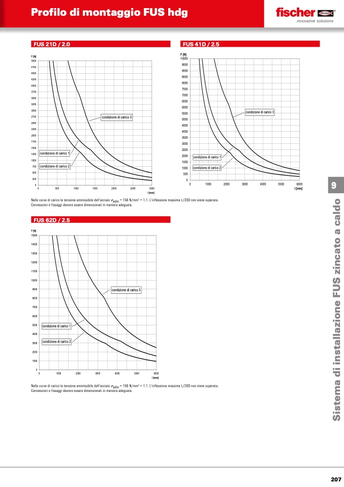 Nelle curve di carico la tensione ammissibile dell‘acciaio σadm = 156 N/mm