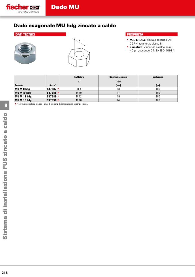 ▼ Prodotto disponibile su richiesta. Tempi di consegna da concordare con personale fischer.