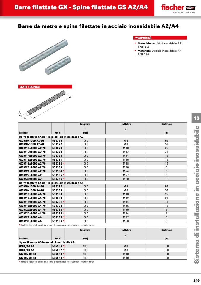 ▼ Prodotto disponibile su richiesta. Tempi di consegna da concordare con personale fischer.