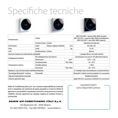 Daikin Air Conditioning Italy S.p.A. non si assume responsabilità per eventuali