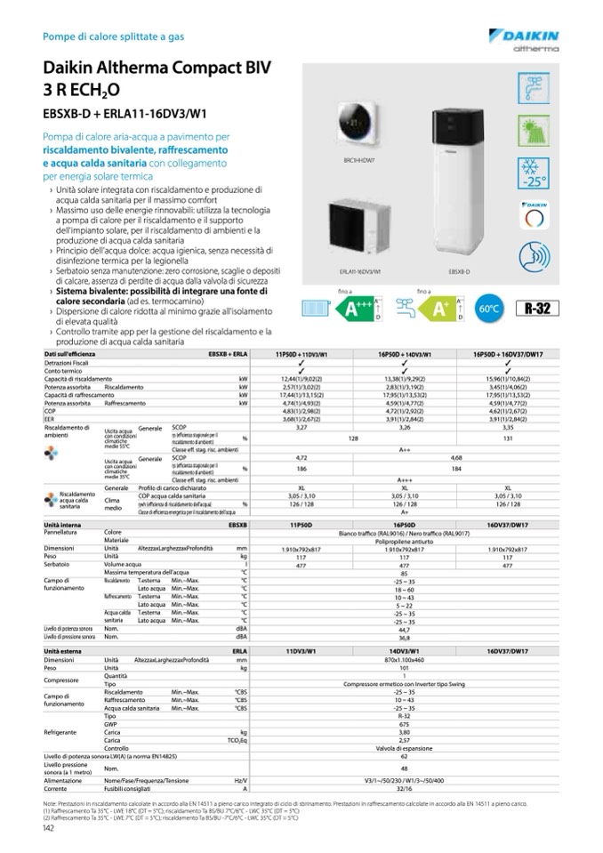 Note: Prestazioni in riscaldamento calcolate in accordo alla EN 14511 a pieno carico integrato di ciclo di sbrinamento. Prestazioni in ra