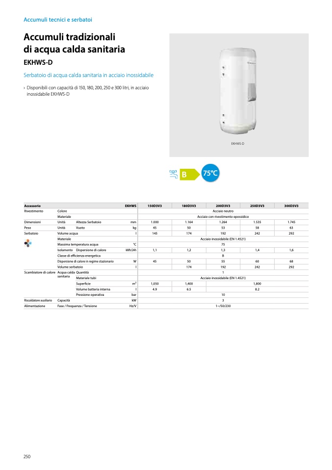 à di 150, 180, 200, 250 e 300 litri, in acciaio