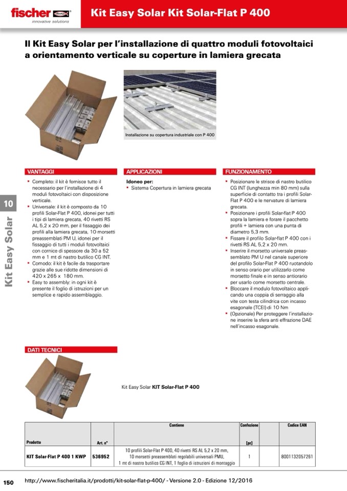 http://www.fischeritalia.it/prodotti/kit-solar-flat-p-400/ - Versione 2.0 - Edizione 12/2016