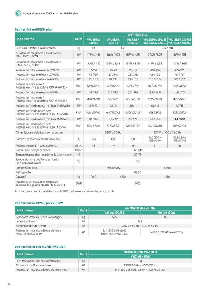Dati tecnici aroTHERM plus