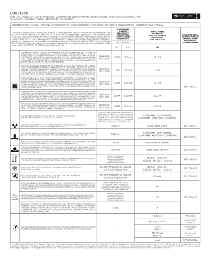 CARATTERISTICHE TECNICHE - TECHNICAL CHARACTERISTICS - CARACTERISTIQUES TECHNIQUES - TECHNISCHE EIGENSCHAFTEN - CARACTERÍSTICAS TÉCNICA