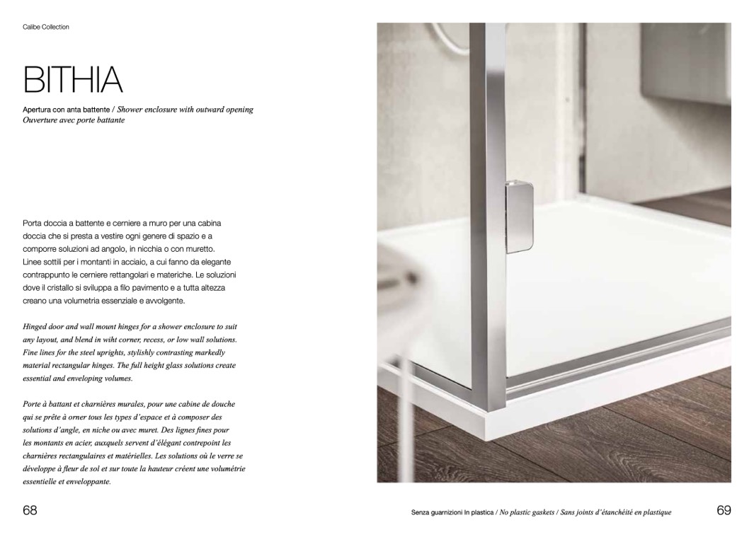 solutions d’angle, en niche ou avec muret. Des lignes fines pour