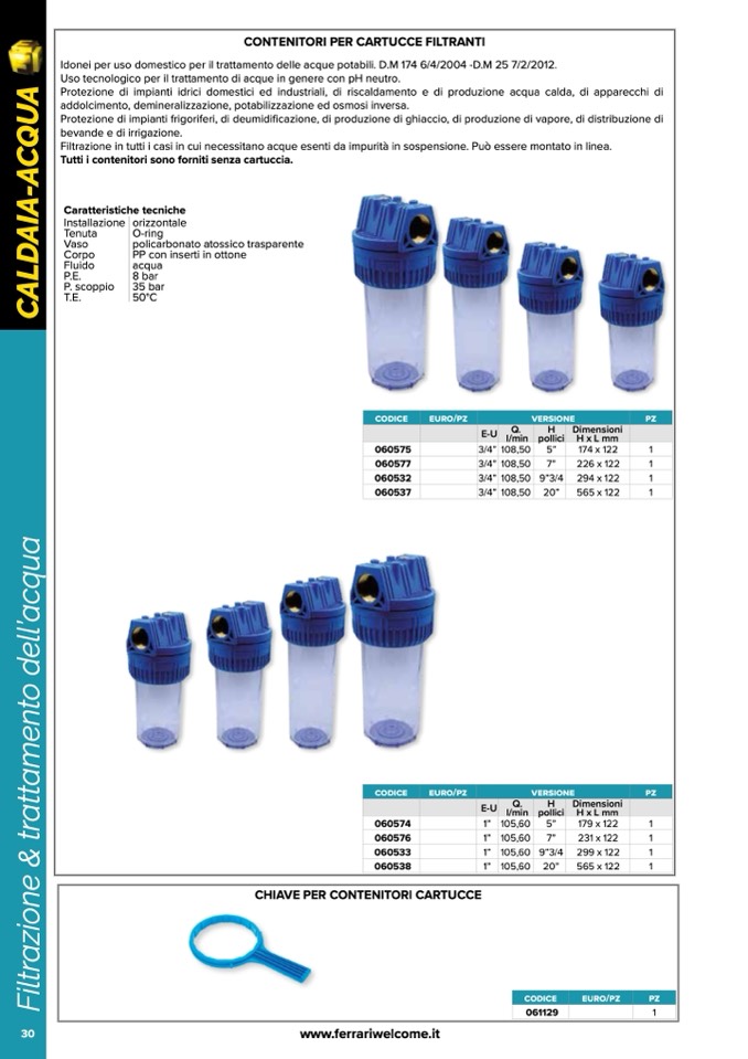 CONTENITORI PER CARTUCCE FILTRANTI