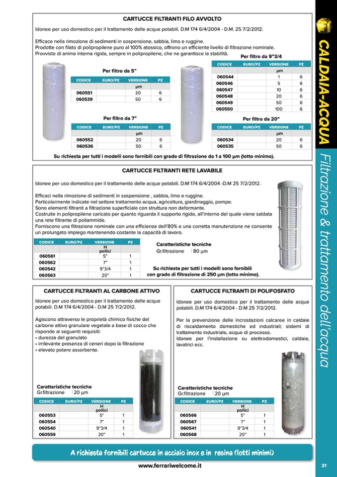 CARTUCCE FILTRANTI DI POLIFOSFATO