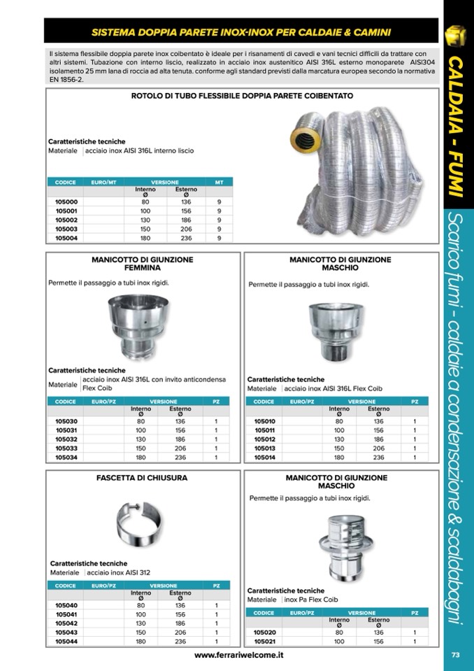 SISTEMA DOPPIA PARETE INOX-INOX PER CALDAIE & CAMINI