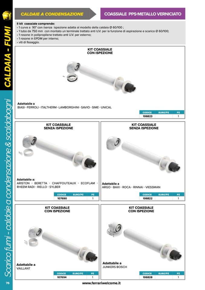 • 1 curva a 90° con /senza ispezione adatta al modello della caldaia Ø 60/100 ;
