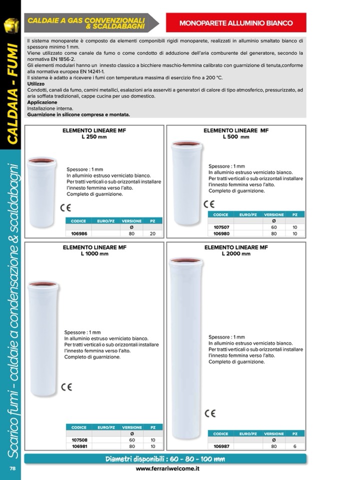 Condotti, canali da fumo, camini metallici, esalazioni aria asserviti a generatori di calore di tipo atmosferico, pressurizzato, ad