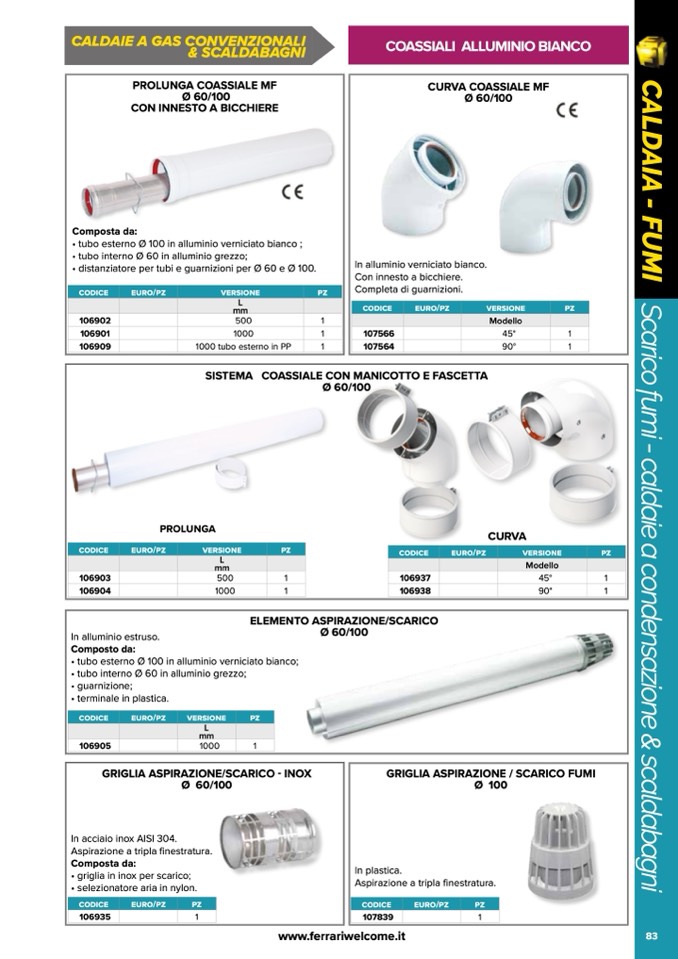• distanziatore per tubi e guarnizioni per Ø 60 e Ø 100.