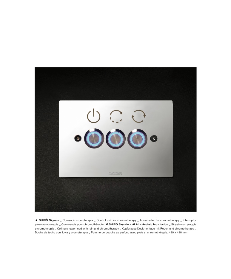Ducha de techo con lluvia y cromoterapia _ Pomme de douche au plafond avec pluie et chromothérapie. 430 x 430 mm