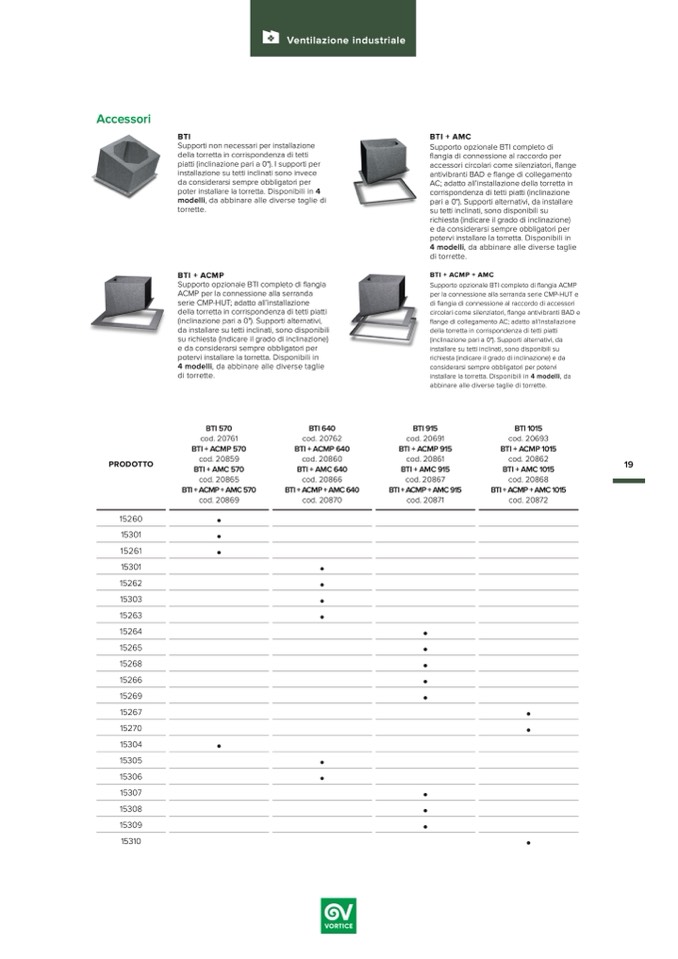 Supporto opzionale BTI completo di flangia ACMP