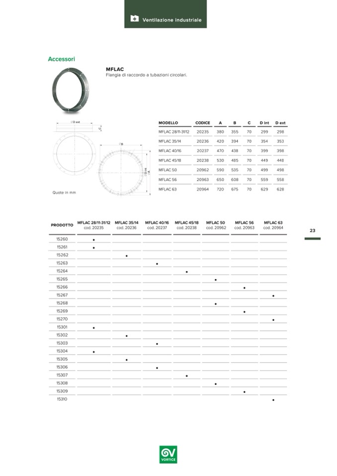 Flangia di raccordo a tubazioni circolari.