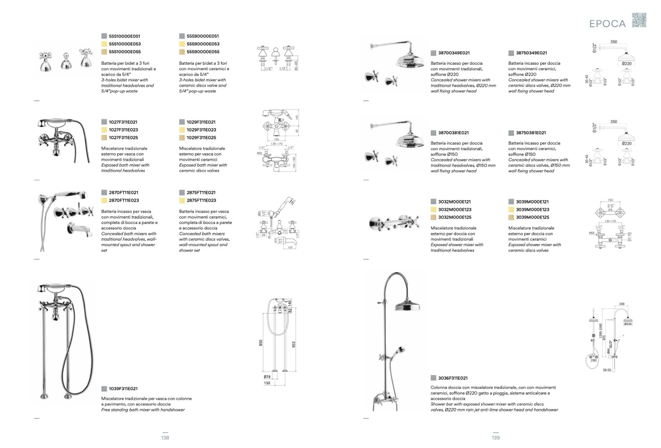ceramici, soffione Ø220 getto a pioggia, sistema anticalcare e