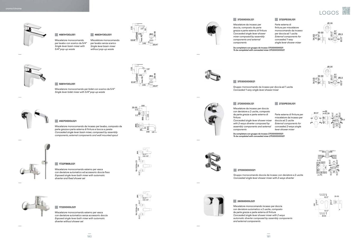Gruppo monocomando doccia da incasso con deviatore a 2 uscite