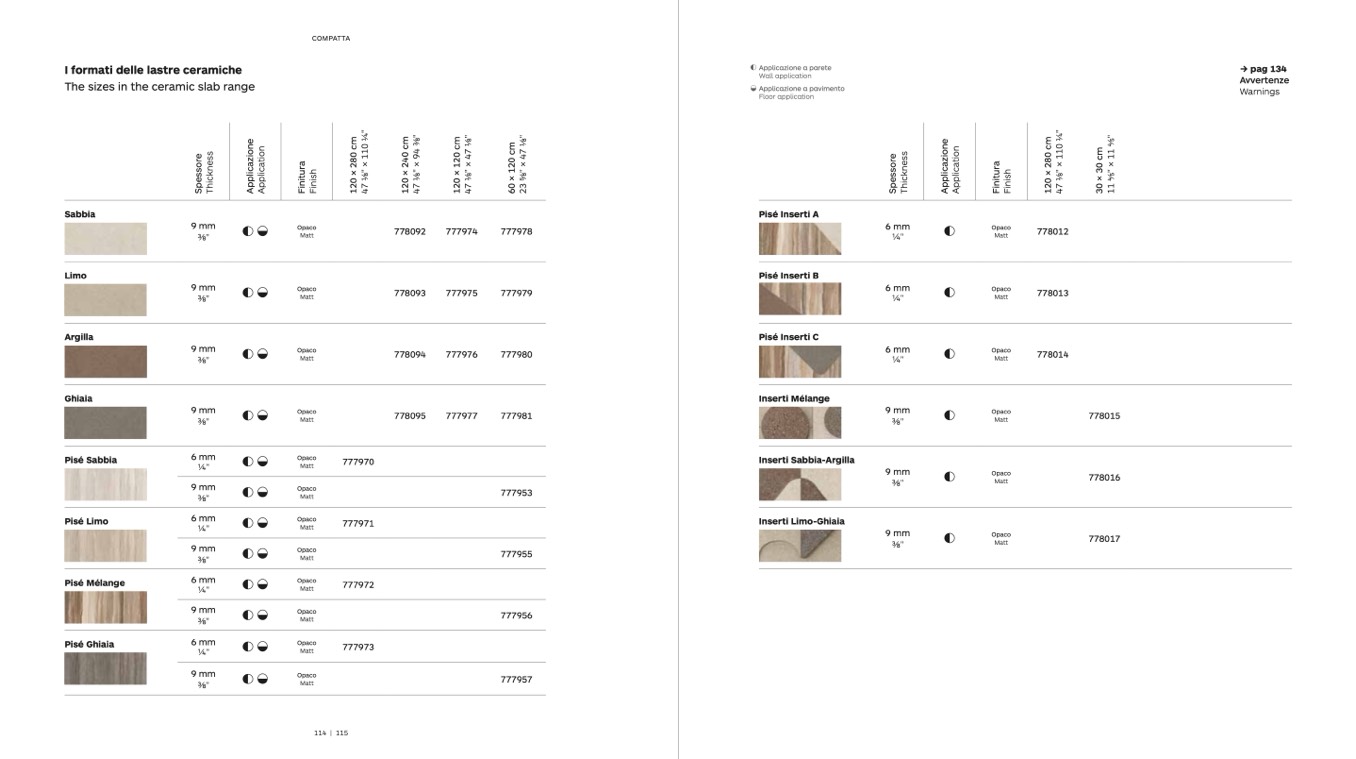 The sizes in the ceramic slab range