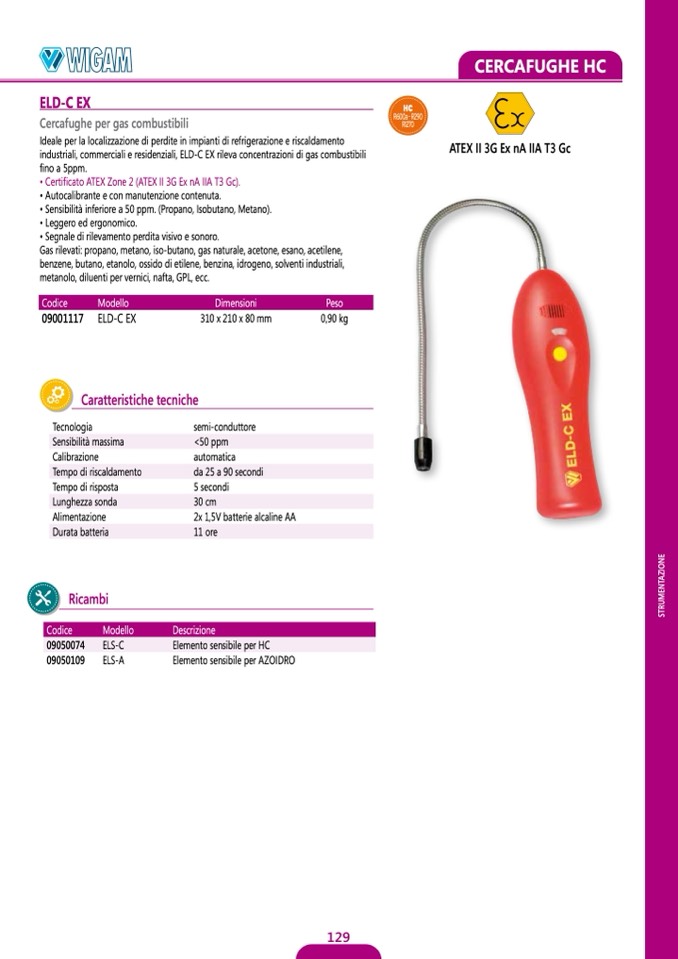 industriali, commerciali e residenziali, ELD-C EX rileva concentrazioni di gas combustibili
