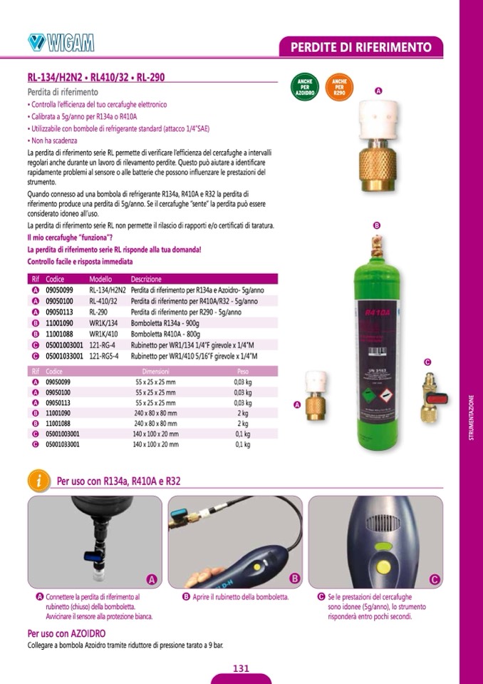 Perdita di riferimento per R134a e Azoidro- 5g/anno